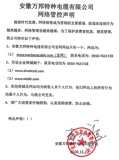 鄭重聲明:安徽萬邦特種電纜有限公司官方網站為:www_wanbangcable_com.fuhongqi.cn,除此之外無任何子網站或合作網站,其余均為假冒偽劣。電話:0550-7621728 13485756353 地 址:安徽省天長市滁州高新技術產業開發區經四路29號